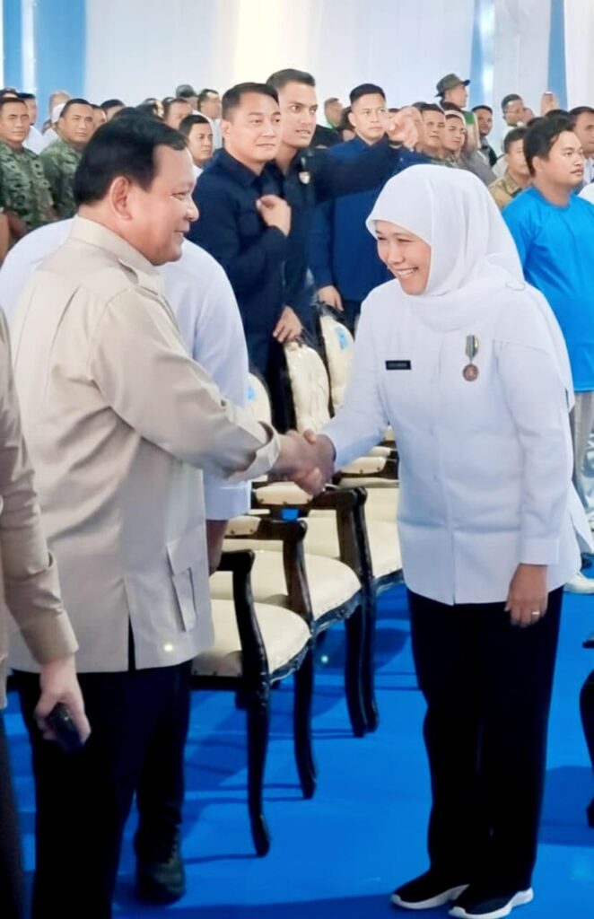 “Alhamdulillah kami haturkan terima kasih sebesar-besarnya pada Bapak Presiden Prabowo atas tanda kehormatan Satyalancana Wira Karya yang kami terima hari ini,” kata Gubernur Khofifah.